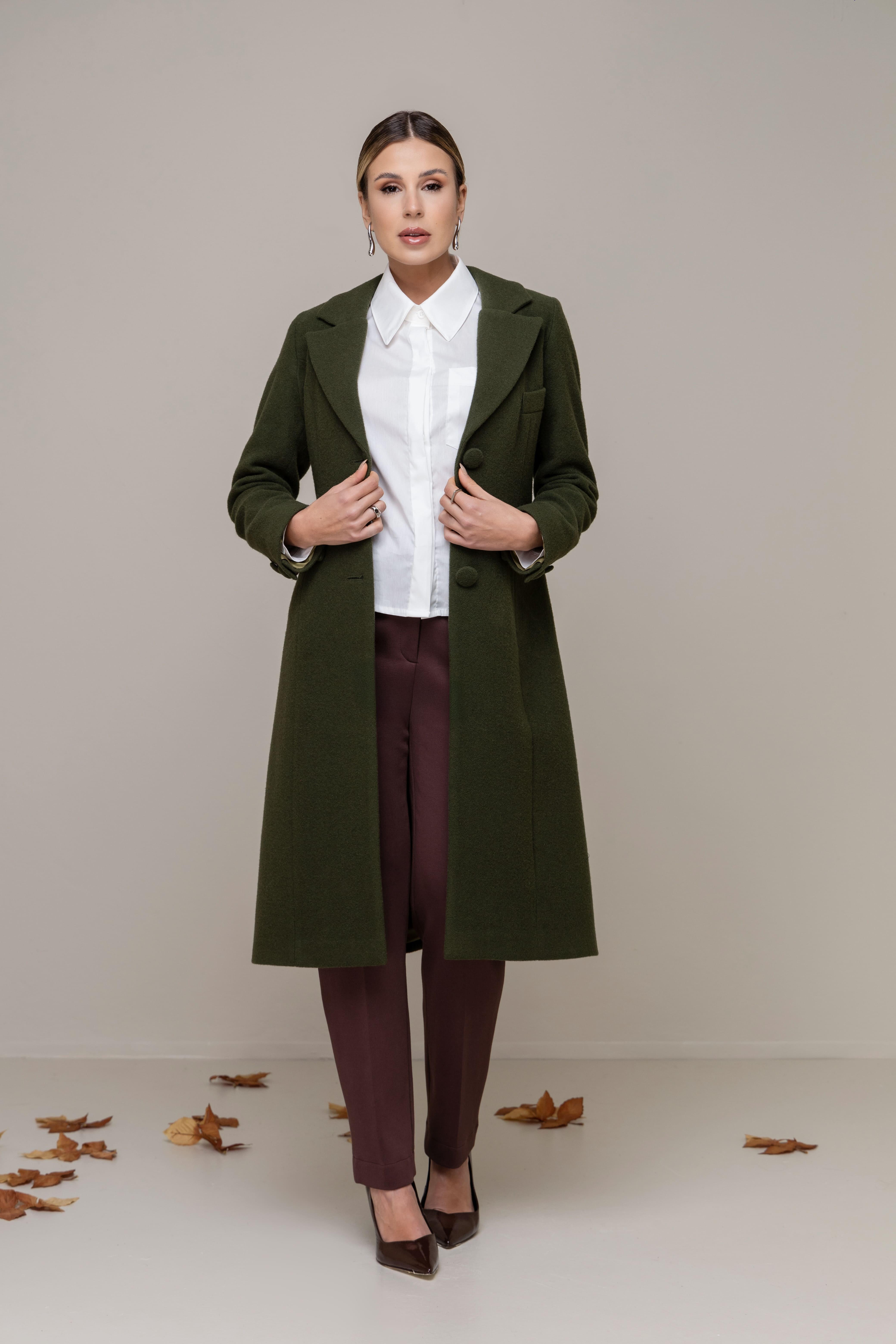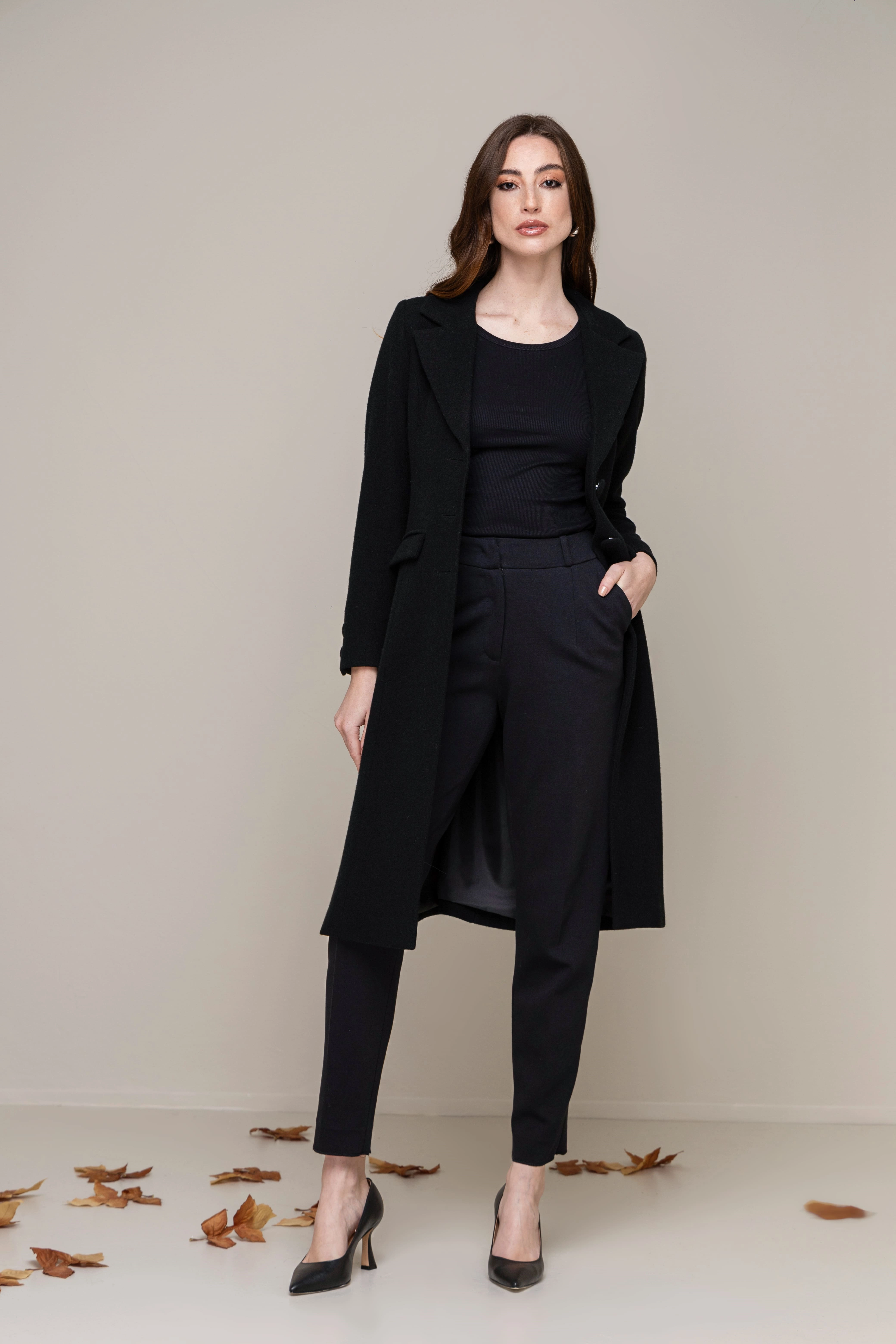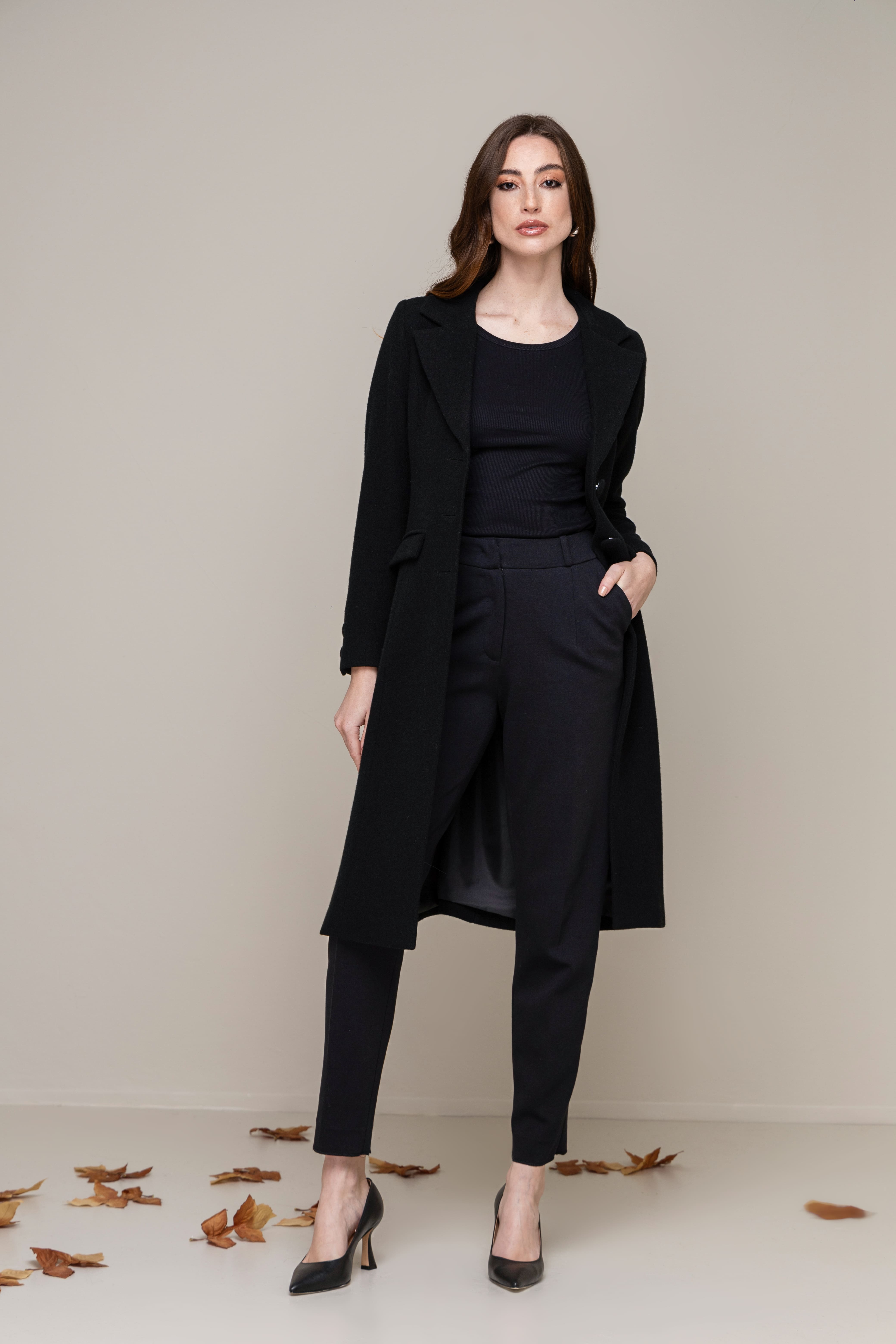 O corte elegante e a textura nobre do tecido criam uma presença sutil, porém marcante. Um essencial atemporal, ideal para quem aprecia o silêncio da sofisticação.